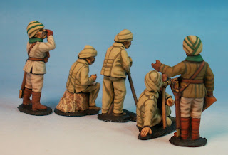 Originally the Perry Sudan Britsh heliograph pack with Woodbine headswaps, a bit of greenstuff on the collars and a Turkish paint job. More table-dressing for Mesopotamia and Palestine